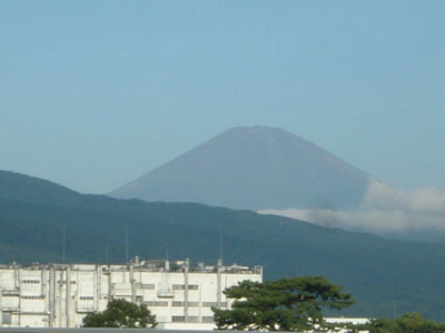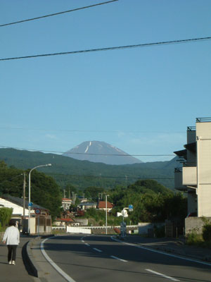今日も暑かったです。ちょっと歩いただけなのにヘトヘト。太陽の光で溶けるかと思いました。(大げさな^^;) でも風があって、あ、少し秋に近付いたかな?って思いました。 写真は今日の富士山。もうすっかり雪がありません。富士山もこの暑さでたじたじ?