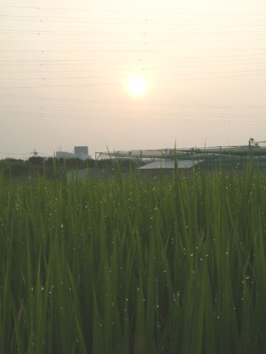 夏場は暑いので、出発時間を早目に設定しているのですが、それでも暑かった。何だろう、蝉の声かな。あれって聞くだけで暑さを増すような・・・ 写真はイネです。朝露が太陽の光をはじいて綺麗だったのでつい写真を撮ってしまいました。 [MEMO] 12,436歩 8.33km 100分 440.31kcal