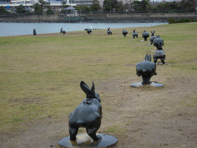 お友達から頂いた「松江の島根美術館」のウサギの写真です。