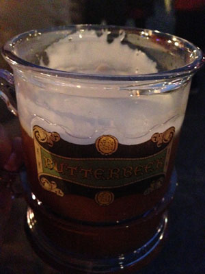 甘いもの得意面子ばかりでしたが、取っ手の着いたマグカップ入り(1200円!びっくり価格(笑))のバタービールにしたせいで、それなりに量もあり・・・最後の方は一生懸命飲んでました。プラスチックのペコペコした方の取っ手なしカップだったら、もっと少ない量だったんですけれど(^O^)