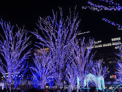 ついでに、ホグワーツ城と、クリスマスツリーと、昔のアメリカを白い壁に投影したライティングの写真も付けてしまいました。