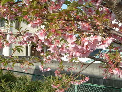 バラ科/落葉小低木 カンヒザクラとマメザクラを交配した淡い紅色の一重咲き。花が下を向いているのが特徴。早咲きで花期は2月下旬から3月上旬ごろ。