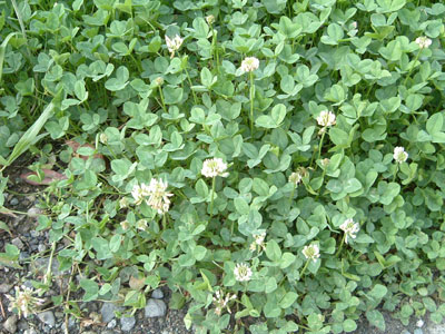 マメ科/ヨーロッパ原産。/アイルランド国の象徴。 江戸時代、オランダ人がガラス器具を箱詰めするときの詰め物として利用していたことから「シロツメクサ」という名前の由来になったらしい。 ふつうは葉は3枚だがまれに4枚つくことがある。 四ツ葉の形は「十字架」に似ていることから、幸運のシンボルとなったようです。