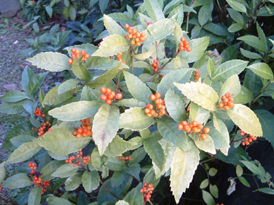 万両は垂れ下がり、千両は上向きにつくので、万両の方が重い、千両は軽い、とのことから名づけられたともいわれる。