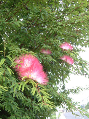 葉は2回偶数羽状複葉。果実は細長く扁平な豆果。 和名のネム、ネブは、夜になると葉が閉じること(就眠運動)に由来する。 花は一見するとタンポポの綿毛をうす桃色に染めたように見えますが、実はこれ全体が一つの花なのではなく、10 ~20 の小さな花が集まって一つの花のように見えている。