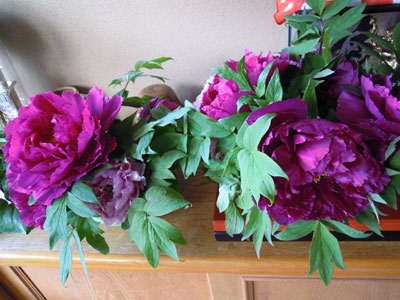 ボタンが雨に当たると可哀想だと言って家族が切り花にしました。玄関がぱっと華やかになりました。