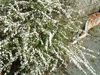 春に小さい白い花を咲かせる。大きくなると1.5mほどの高さになる。地面の際から枝がいく本にも枝垂れて、細く、ぎざぎざのある葉をつける。花は、3月から5月にかけて、5弁で雪白の小さなものを枝全体につける。そのさまから和名がついた。