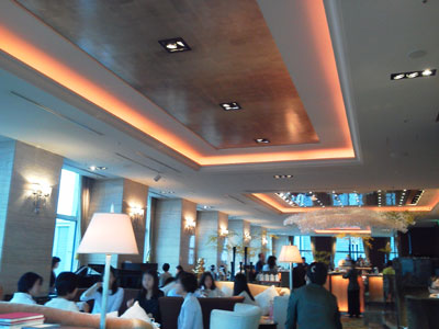 左窓際にピアノがあって、ピアノの生演奏を聴きながら。