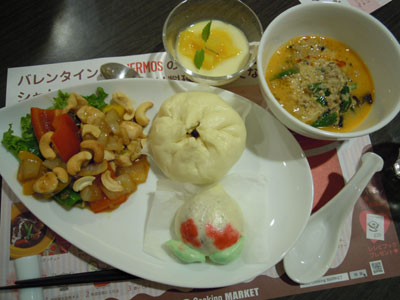 ・手作り中華まん2種~肉まん・桃まん~ ・担担春雨スープ ・鶏のカシューナッツ炒め ・豆腐花風(トウファふう) 生地から手作りした肉まんと桃まんです。 久しぶりに手ごねで生地作ったわ・・・(最近は機械に頼ってばっかり^^;) パンと違って、ちょっとこねにくい生地かなぁ。 ドライイーストがぬるま湯であんなにぶくぶくするんだ!と新発見。 確かにカシューナッツは乾煎りして後からトッピングした方が確かにかりっとした触感でおいしいかも。 坦々スープは辛かった^^;