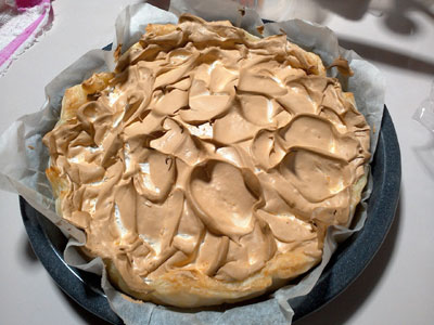 冷凍パイシートの上にレモンジャムを塗り、その上にメレンゲを盛りました。