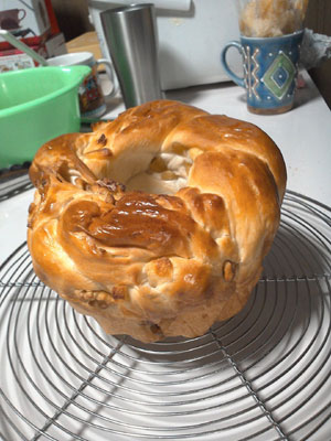 胡桃を入れて、三つ編みして、クグロフ型で焼きました。