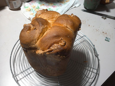 一度食パンを機械から取り出して、チーズを巻いてもう一度機械に戻して焼きました。