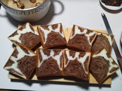 上に載せたのは、缶詰の桃と、チョコとアーモンドスライス。中も桃缶。