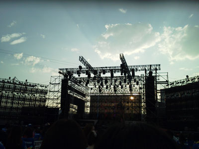 小雨が降っていたのに、始まる頃には写真のように晴れて、後ろには虹まで出ていました。