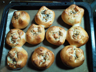 今日作ったのは「クグロフ」「紫蘇とベーコンのエピ」それに合わせた「バタータ・チャップ(イラク風焼きコロッケ)」と「ビーンズサラダ」でした。