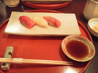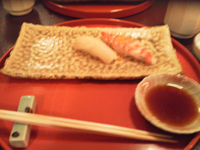 左は確か赤身。で、真ん中がイカで、右が海老。