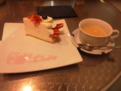 旬のフルーツが美味しいんだよと言う友達のアドバイスを取り入れて、私が選んだのはイチゴのレアチーズケーキ。