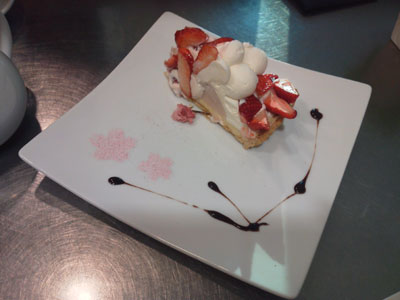 写真では判りづらいですが、お皿の左手前に桜の花が!