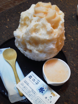 氷がふんわりしているので、上からシロップをかけた瞬間かき氷が溶けてしまう^^;