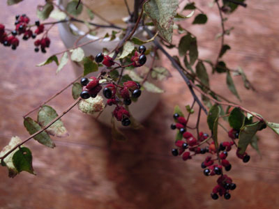 雌雄異株、樹高は3m程、大きなものは5mになる。枝には鋭い棘が2本ずつ付く。