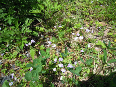 ほふく性で開花期は初夏から夏。花は唇形で、薄い青紫色をしており距(きょ)がある。 その辺の道端に生えている雑草ですが可愛い花ですよね。