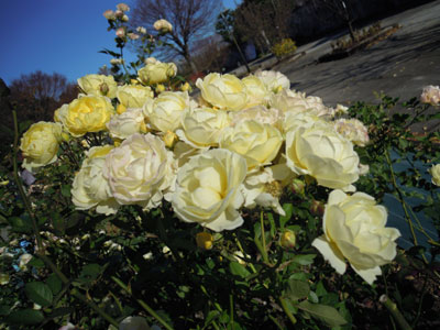綺麗なバラだったのでパシリ。黄色から白へのグラデーションが素敵でした!