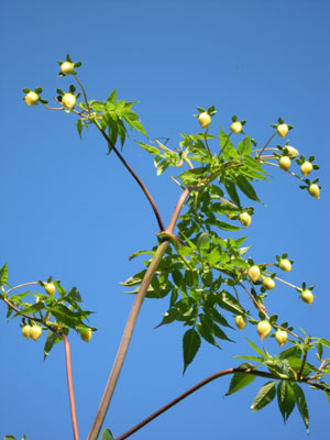 葉は長さ数cmでつやがあり互生する。ふつう雌雄異株で、8月頃開く花は径1cmほど、10枚前後の白い花被に包まれ、中央におしべ、めしべがそれぞれ多数らせん状に集まる。雌花の花床は結実とともにふくらみ、キイチゴを大きくしたような真っ赤な丸い集合果をつくる。実(サネ)が美しいカズラ(葛)の意味。上代には、蔓草を髪の飾りとし、髪蔓(カミツラ)と言ったのがカズラとなった。