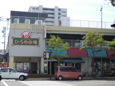 土佐藩家老の屋敷跡付近にあり,屋敷が消えた維新後もその一帯は親しみを込めて「弘人屋敷(ひろめやしき)」と呼ばれていたことから,その名をとり「ひろめ市場」と名づけられました。ひろめ市場の中は「お城下広場」や「龍馬通り」など7ブロックからなり,鮮魚店や精肉店,雑貨・洋服屋,飲食店など,個性的なお店が集まっています。市場内の至る所にテーブルと椅子が並べられていて,それぞれ自分の好きなものを,好きなお店で買ってきて,持ち寄って食べるスタイルとなってます。なので市場内のほとんどの飲食店にはテーブルがありません。食事後は食器をまとめておけばスタッフがすべて回収してくれます。食べる・買う・見る・遊ぶ…と,楽しみ方は無限大。自分に合わせた楽しみ方ができます。