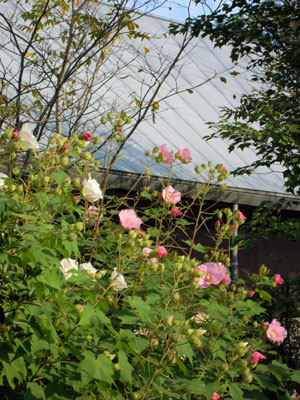 7~10月始めにかけてピンクや白で直径10~15cm程度の花をつける。朝咲いて夕方にはしぼむ1日花で、長期間にわたって毎日次々と開花する。花は他のフヨウ属と同様な形態で、花弁は5枚で回旋し椀状に広がる。先端で円筒状に散開するおしべは根元では筒状に癒合しており、その中心部からめしべが延び、おしべの先よりもさらに突き出して5裂する。 過去にもここに載せたことがありますが、こっちの写真のが綺麗に撮れたのでも一回。
