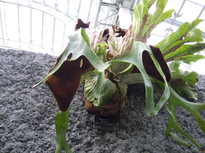 熱帯地域に生え、「ココやし」などの樹木に着生します。大型の「びかくしだ」です。「プラティケリウム・スペルブム」に似ていますが、胞子葉に2個の胞子嚢をつけるのが特徴です。