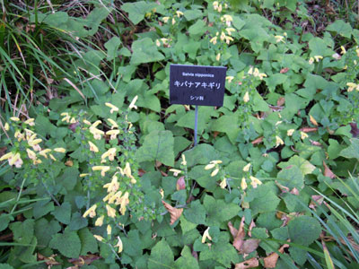 花は、8~10月ころ、茎の先端に花穂を出して、唇形の黄色~紅紫色の花を数段つけます。 この花の特徴はなんといっても花の上部先端から飛びだした赤紫の糸のようなもの。これは花柱(雌しべの一部)だそうです。じゃあ雄しべはというと、花の中央にある赤紫色のノドチンコのようなものがそれです。ただしそれは雄しべの一端であり、花にもぐり込んだ虫がそこを押すと、雄しべの反対側がシーソーの原理で虫の背中に花粉を押しつけるのだそうです。なかなか凝ったつくりとなっています。