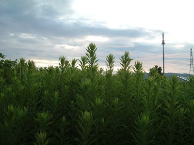 日本には明治時代に渡来した。帰化後急速に広まったようで、御維新草、明治草、世代わり草、鉄道草などの様々な名前で呼ばれてきた。オオアレチノギクとともに、各地の路傍、放棄畑、荒れ地などに生育し、高さ2mほどになって群落を形成する。オオアレチノギクよりも茎がしっかりしているようで、より草丈は高くなる。秋に芽生え、ロゼットで冬越する1年草(2年草)である。8月に花を咲かせるまではほとんど枝分かれせず、頂部ではたくさんの花序を形成して枝分かれする。 雑草です。元気です。私の背丈より上かもしれない。暑いのに、勢いがありました。