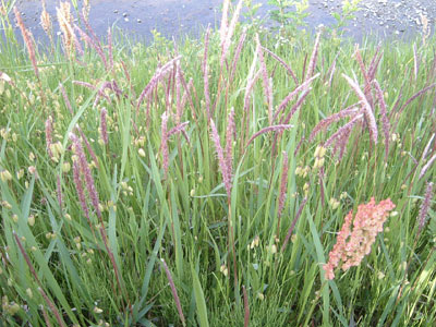 日当たりのよい空き地に一面にはえ、白い穂を出す。かつては食べられたこともある、古くから親しまれた雑草である。細い葉を一面に立てた群落を作り、白い穂を出す。