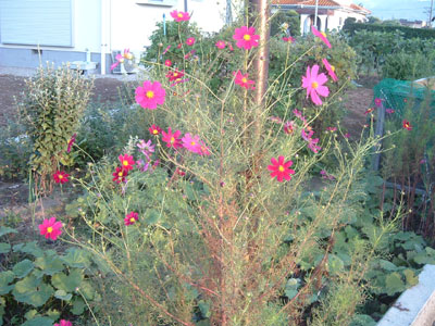 秋に桃色・白・赤などの花を咲かせる。花は本来一重咲きだが、舌状花が丸まったものや、八重咲きなどの品種が作り出されている。 漢字で書くと素敵ですよね。知らないとちょっと読めない^^;
