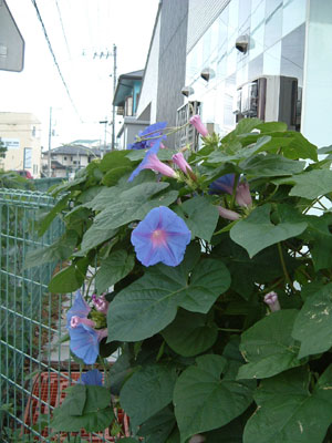 花は朝顔そっくりさんですが、よくよく見ると葉の形が違います。 ヘブンリーブルーは「天上の青」の意味。 日本の朝顔と違い、夕方まで咲いているし、晩秋まで咲き続ける。