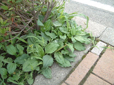 オオバコ科/多年草/日本全土に分布する雑草。 葉は短く、地面に埋まっている。葉は葉柄があり、さじ型。花は稲穂状につき、緑色。 葉や種子は咳止めなどの薬になる。また、花穂を根本から取り、二つ折りにして、二人が互いに引っかけあって引っ張り、どちらが切れるかを競う遊びがある。