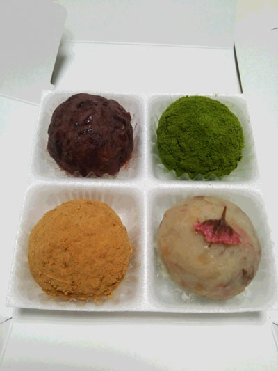 おはぎは知ってる店の新店をたまたま通りがかったので買ってみました。わらび餅も美味しそうでしたよ♪
