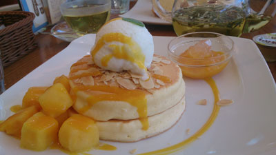 私はマンゴーのホットケーキ。