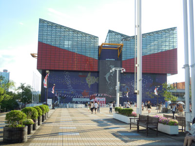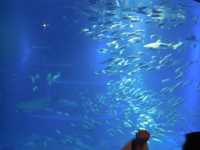 水槽が中央にどどんとあって、通路がその水槽の周りをぐるぐるまわりながら、徐々に下へ下がって観る構造でした。