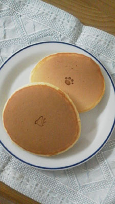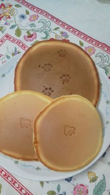 私がホットケーキを焼いたと言うメールを送ったら、「焼印入りのホットケーキを焼いた」とメール&写真を頂きました。