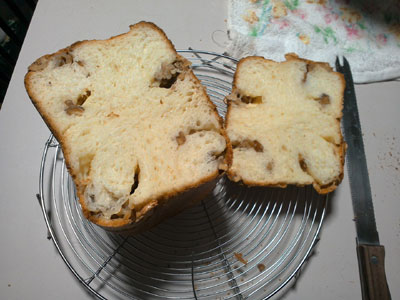 一度食パンを機械から取り出して、チーズを巻いてもう一度機械に戻して焼きました。