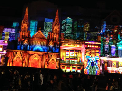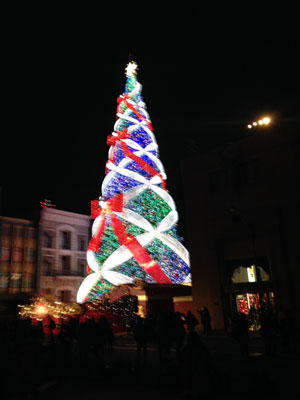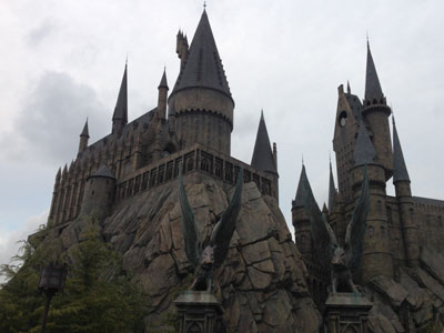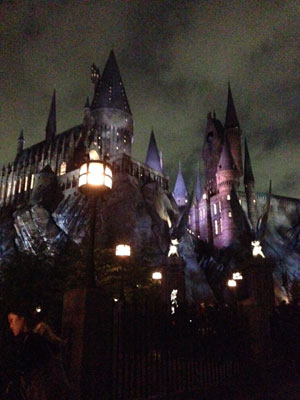ついでに、ホグワーツ城と、クリスマスツリーと、昔のアメリカを白い壁に投影したライティングの写真も付けてしまいました。