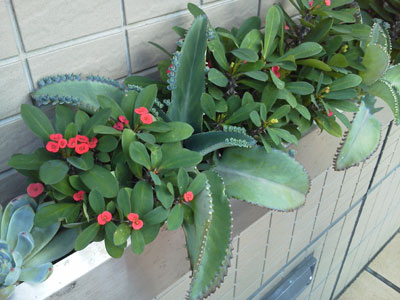 葉の縁に沢山の子が並んで付くので子宝草と呼ばれています。その子を土に乗せるだけで簡単に増やす事もできます。