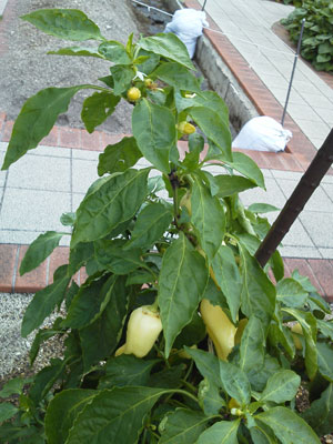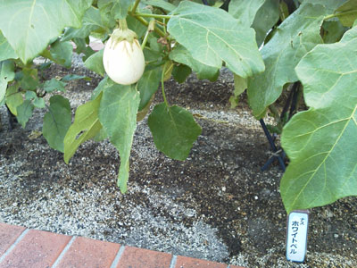 手前の白いのが実。真ん中よりやや右側の楕円形は咲き終わってつぼんだところだと思います。