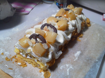 側面はコーンフレークが余っていたからそれをつけてみました。