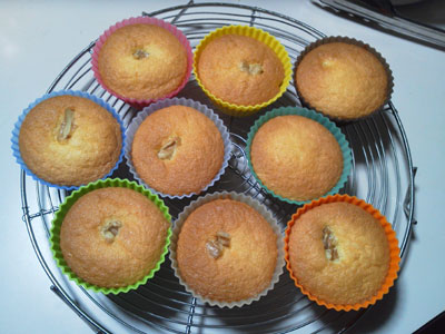 上に載せたのは、缶詰の桃と、チョコとアーモンドスライス。中も桃缶。