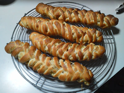 ソーセージ2本とキャベツの千切りを編み込んだパンです。