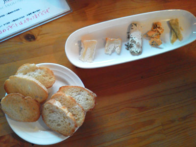 5種類のチーズとバケット。