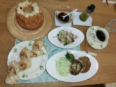 今日作ったのは「クグロフ」「紫蘇とベーコンのエピ」それに合わせた「バタータ・チャップ(イラク風焼きコロッケ)」と「ビーンズサラダ」でした。