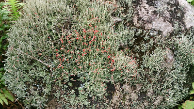 イオウゴケは地衣植物の一種。地衣植物は菌類と藻類の共生体、つまり原生動物、バクテリア、担子菌などの組み合わせによって、岩などにはりついて、子器で胞子を作り増える植物を言う。